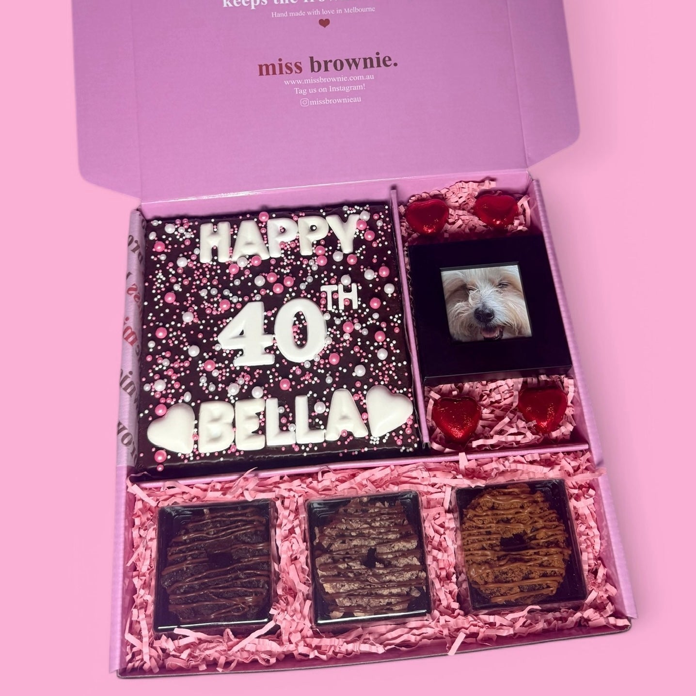Each brownie is carefully packaged to arrive in perfect condition, even when travelling long distances.